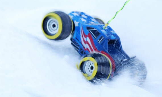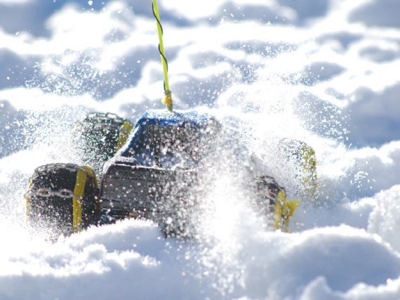 Fangen wir mal mit den unangenehmen Seiten an: Fahren im Schnee ist auch für ein Modellauto nicht so harmlos wie es zunächst scheint. Die Wahrscheinlichkeit ist ziemlich groß, dass das Auto dabei Schaden nimmt, und es können hässliche Unfälle passieren, an die man nicht so schnell denkt. Daher: Wenn Sie es selbst probieren möchten, dann nehmen Sie unsere Tipps als wohlgenmeinte Ratschläge, die wir selbst probiert haben - der Rest geht auf Ihr Risiko.